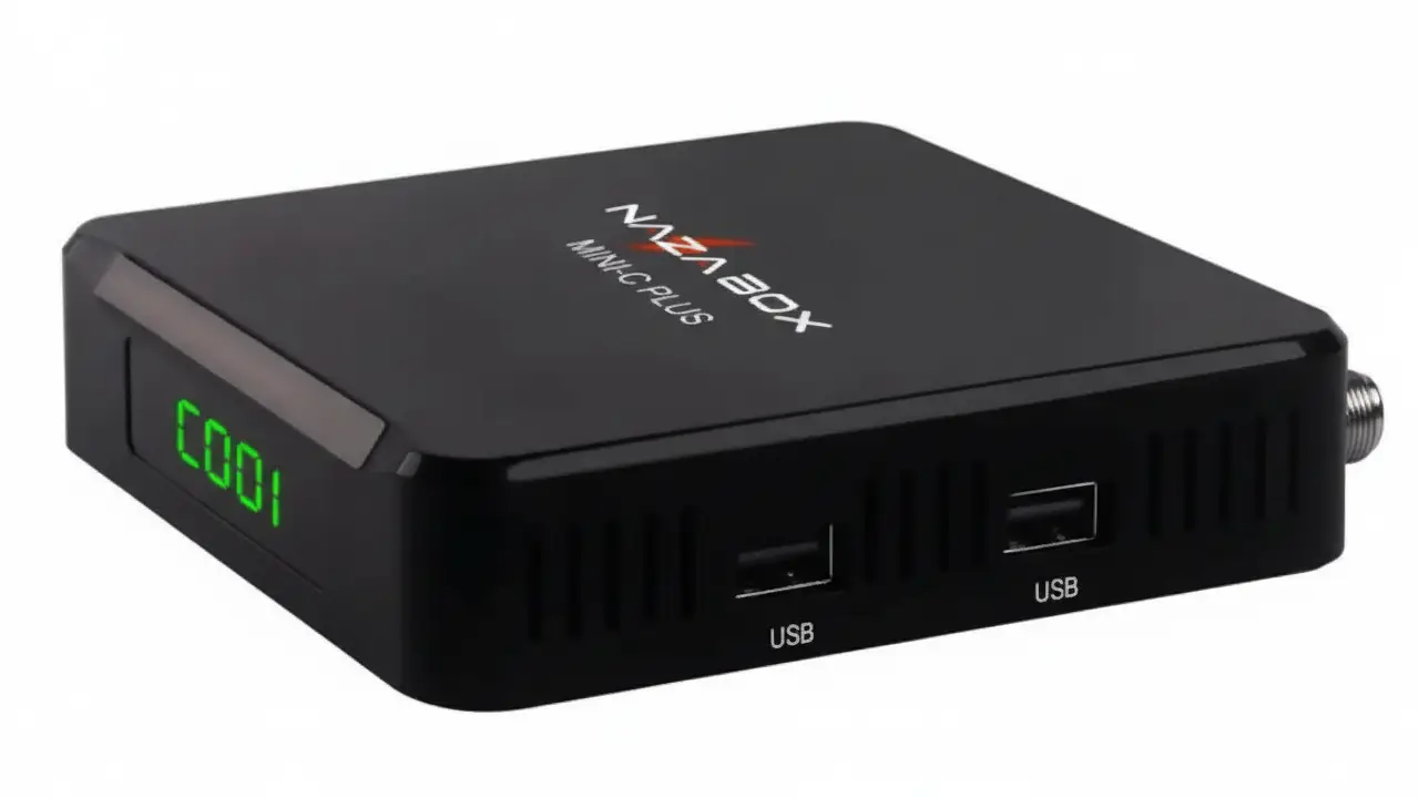 - Insira o pen drive no receptor: Conecte o pen drive na porta USB do Nazabox Mini C Plus.
